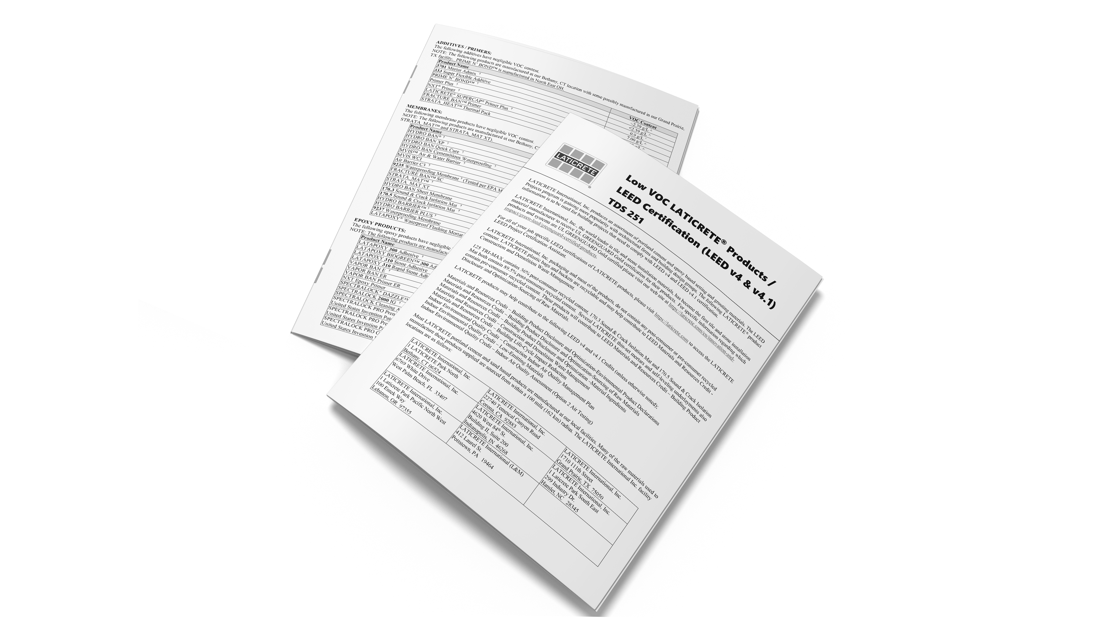 LATICRETE si impegna a fondo per la sostenibilità e per fornire informazioni trasparenti alla comunità in rapida crescita dei sostenitori della bioedilizia. Attualmente, LATICRETE offre schede di sicurezza (SDS) formato GHS, dichiarazioni sulle sostanze contenute nel prodotto (HPD) per tutti i prodotti realizzati da LATICRETE International nonché una certificazione UL GreenGuard Gold per una vasta selezione di prodotti. Nell’immediato futuro, lavorando con il Tile Council of North America, LATICRETE sarà in grado di fornire dichiarazioni ambientali di prodotto (EPD) a livello industriale per malte adesive e stucchi per fuga, entrambi a base minerale.